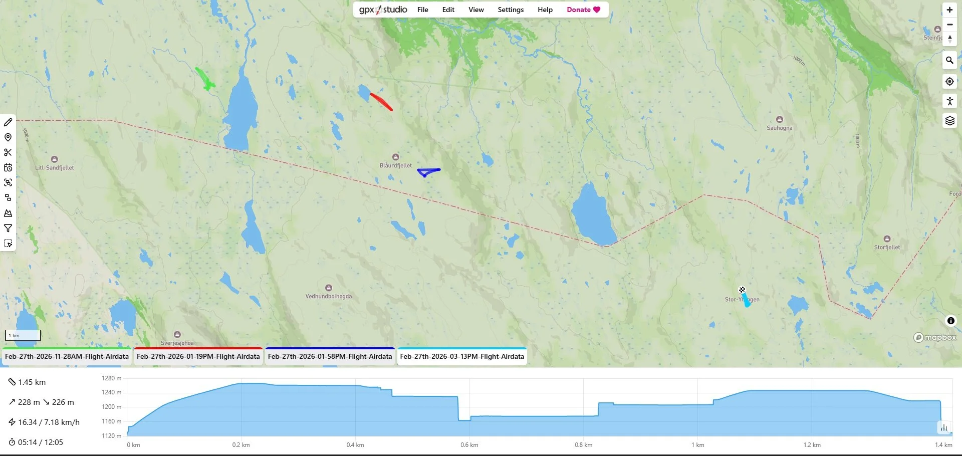 Sporlogg drone 27.02.2026. Kart: Dronepilot Håvard Rønning, Oppdal Bygdealmenning.