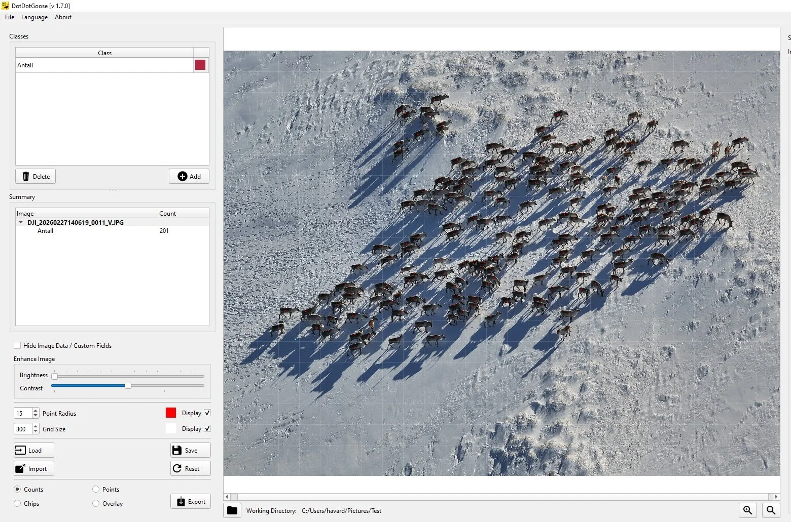 Opptelling av de fire største flokkene er gjort med DotDotGoose.